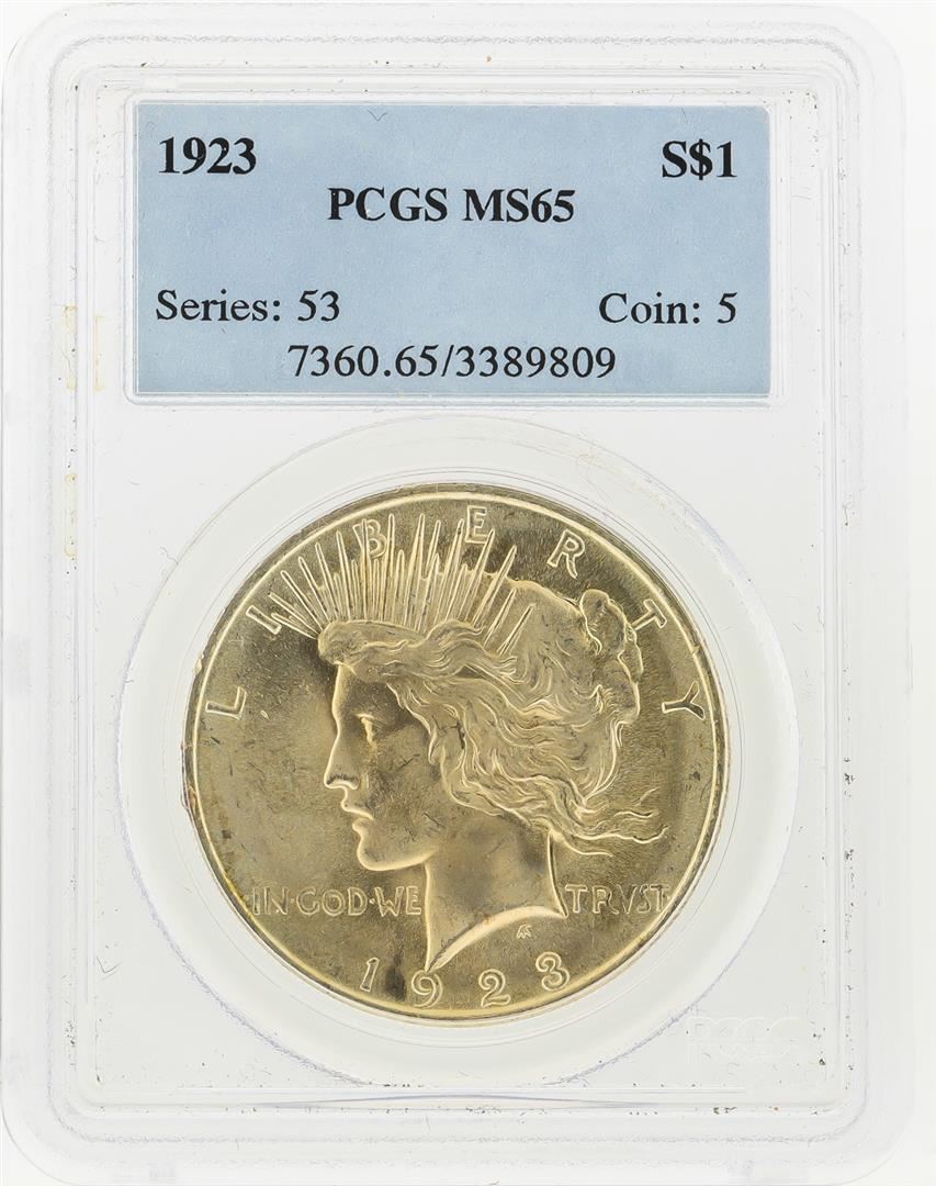 One 1923 $1 Peace Silver Dollar PCGS Graded MS65. PCGS Graded.