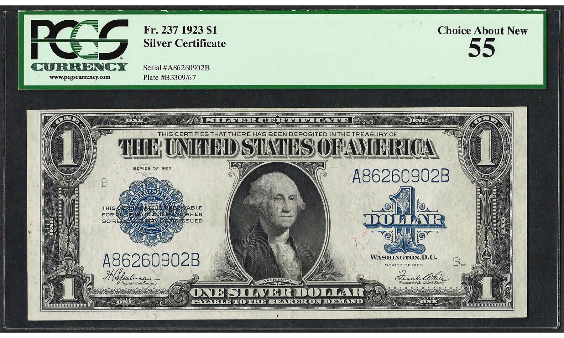 1923 $1 Silver Certificate Note Fr.237 PCGS Choice About New 55