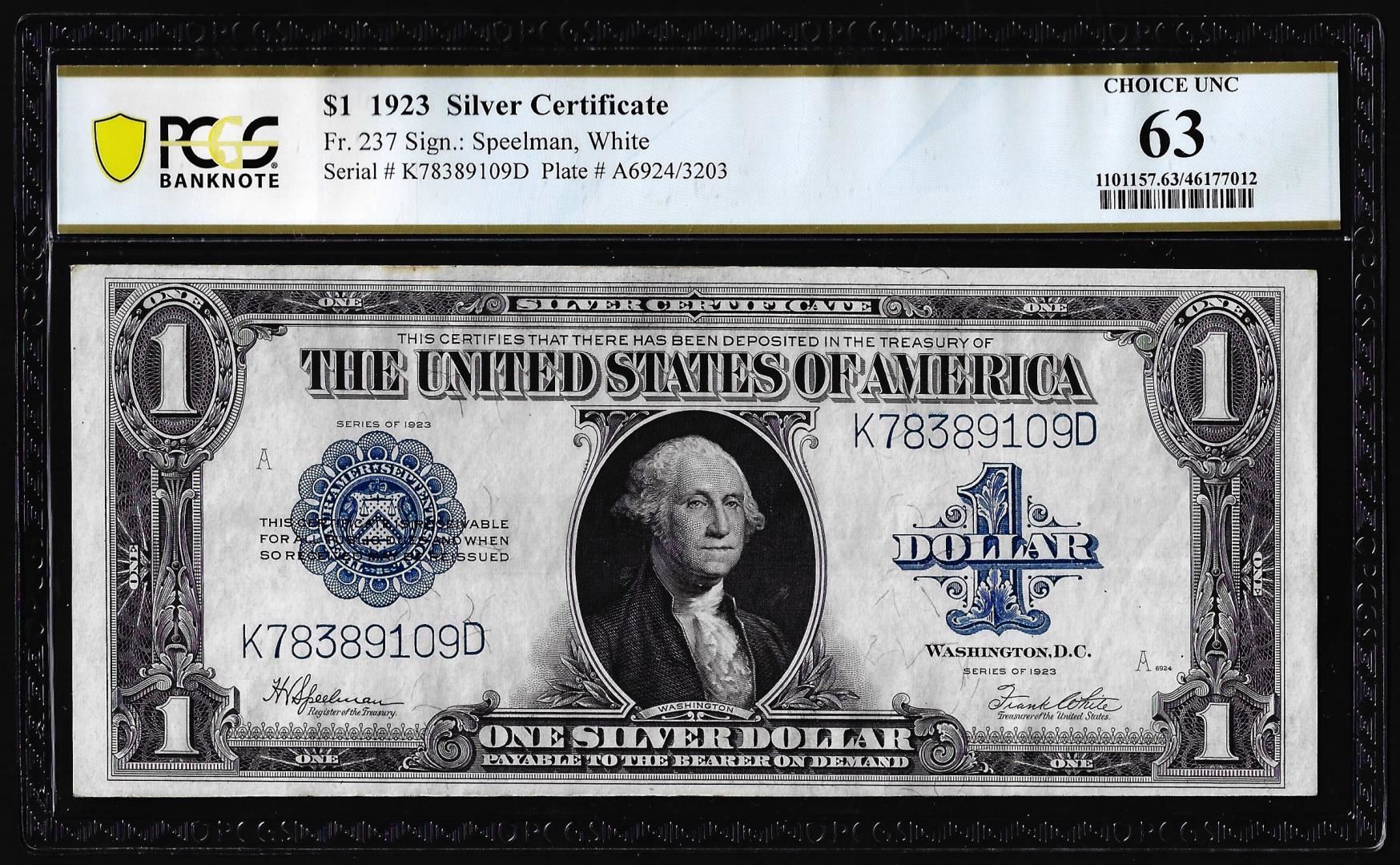 1923 $1 Silver Certificate Note Fr.237 PCGS Choice Uncirculated 63