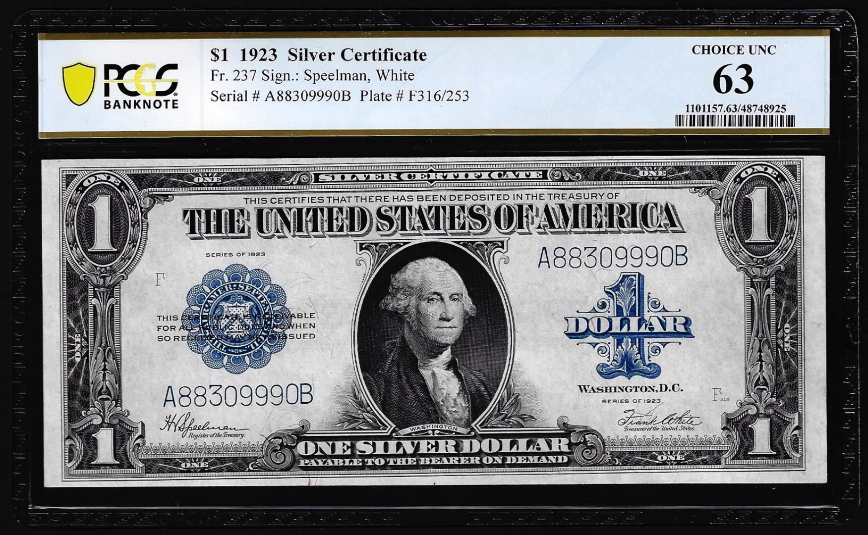 1923 $1 Silver Certificate Note Fr.237 PCGS Choice Uncirculated 63