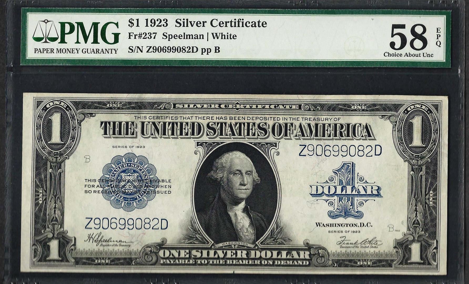 1923 $1 Silver Certificate Note Fr.237 PMG Choice About Uncirculated 58EPQ