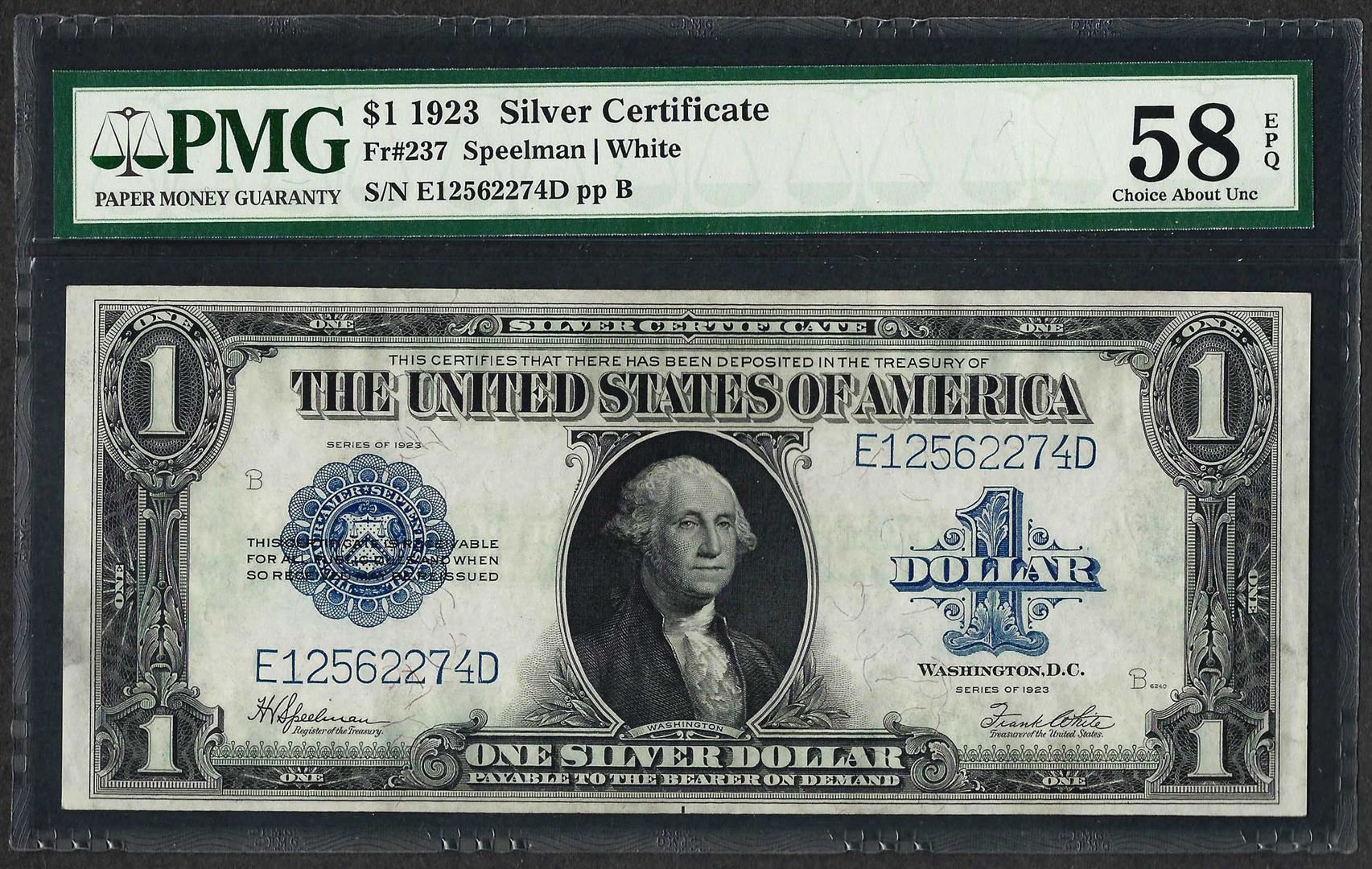 1923 $1 Silver Certificate Note Fr.237 PMG Choice About Uncirculated 58EPQ