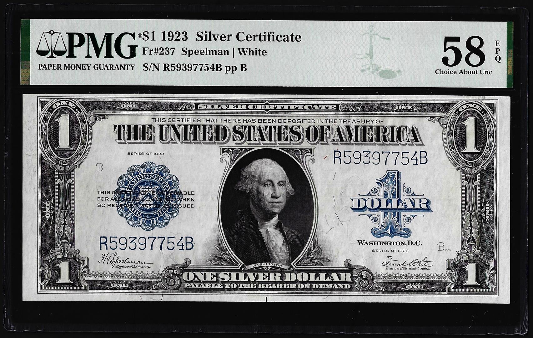 1923 $1 Silver Certificate Note Fr.237 PMG Choice About Uncirculated 58EPQ