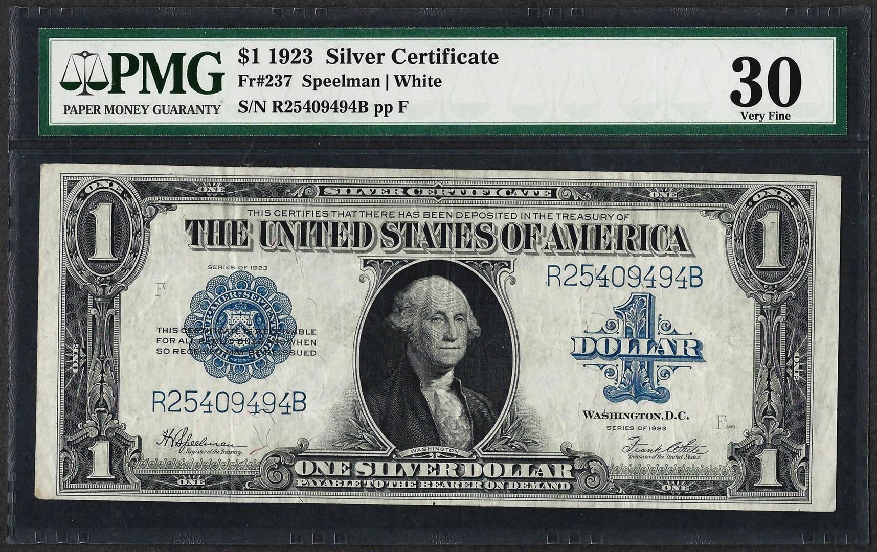 One 1923 $1 Silver Certificate Note Fr.237 PMG Very Fine 30. PMG Certified.