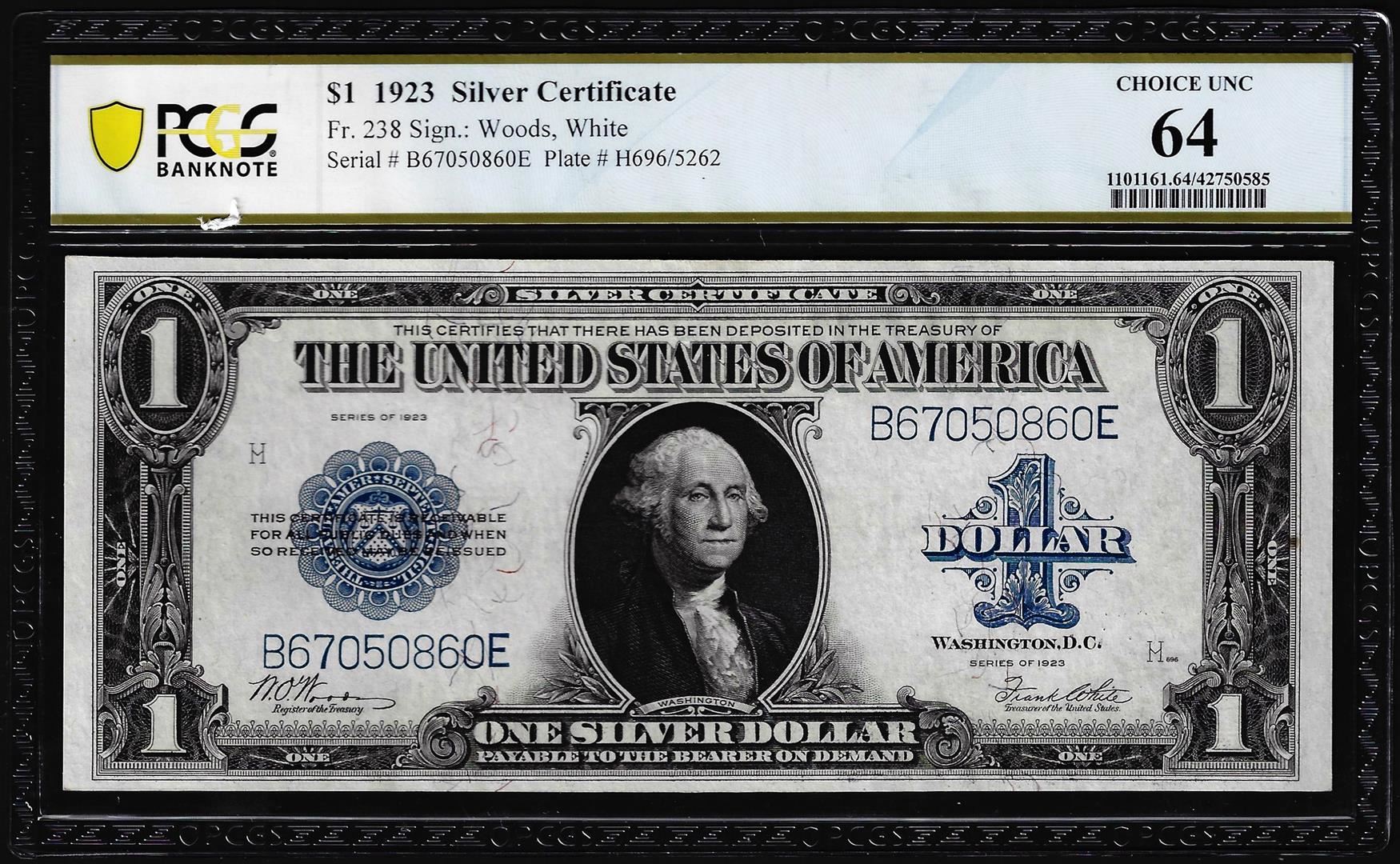 1923 $1 Silver Certificate Note Fr.238 PCGS Choice Uncirculated 64