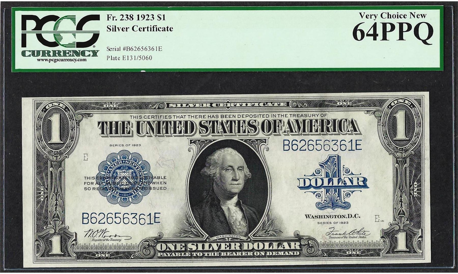 One 1923 $1 Silver Certificate Note Fr.238 PCGS Very Choice New 64PPQ. PCGS Graded.