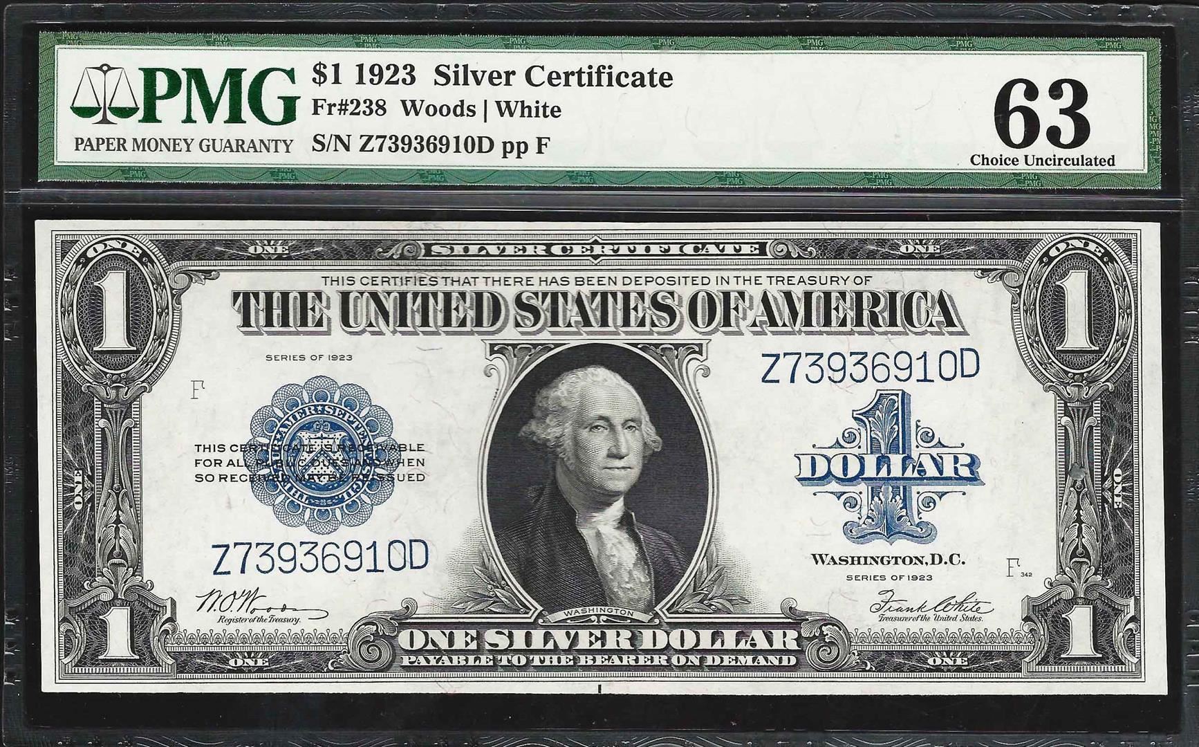 1923 $1 Silver Certificate Note Fr.238 PMG Choice Uncirculated 63