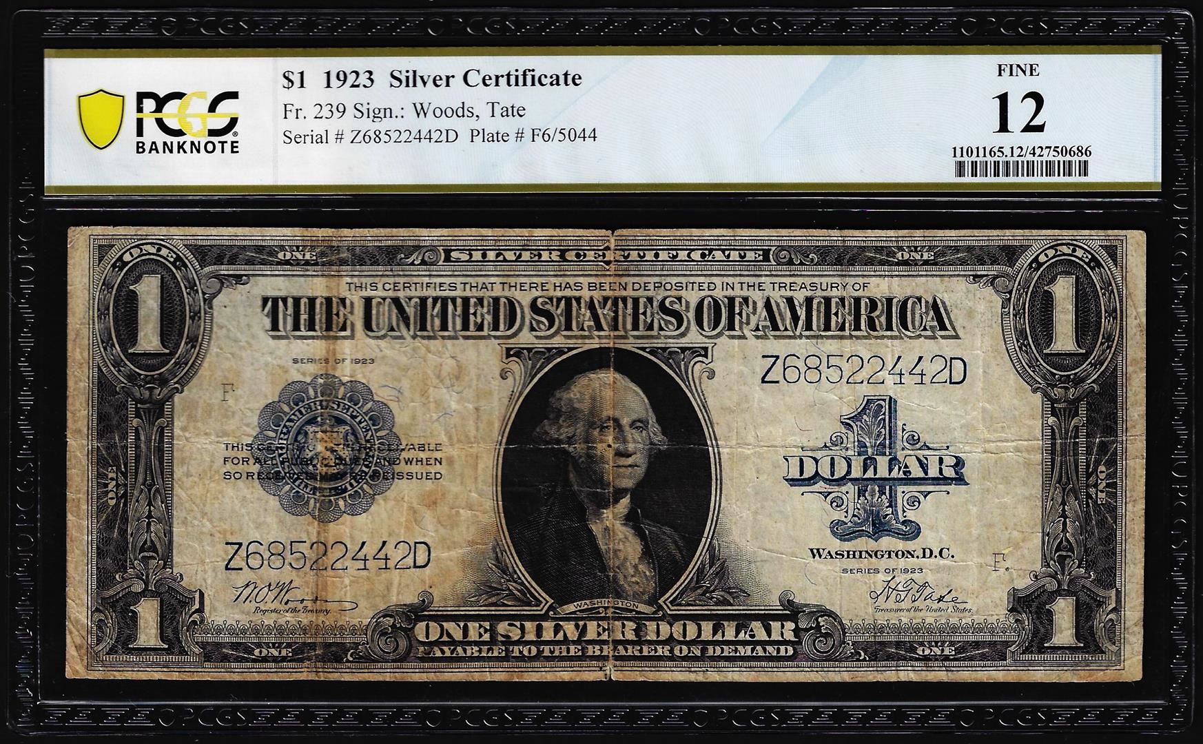 1923 $1 Silver Certificate Note Fr.239 PCGS Fine 12