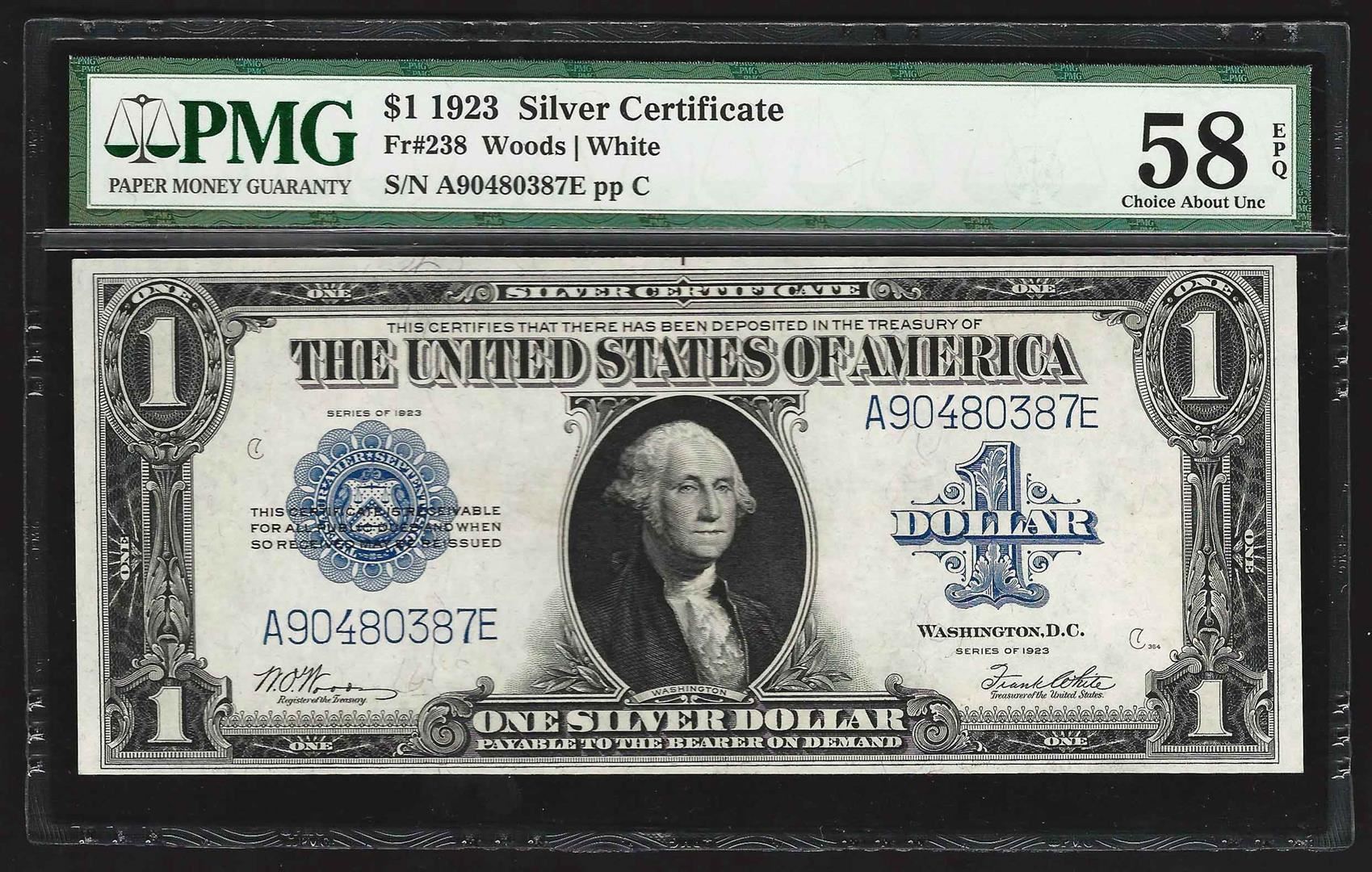 1923 $1 Silver Certificate Note PMG Choice About Uncirculated 58EPQ