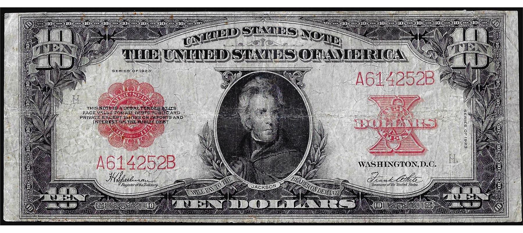 One 1923 $10 Poker Chip Legal Tender Note.