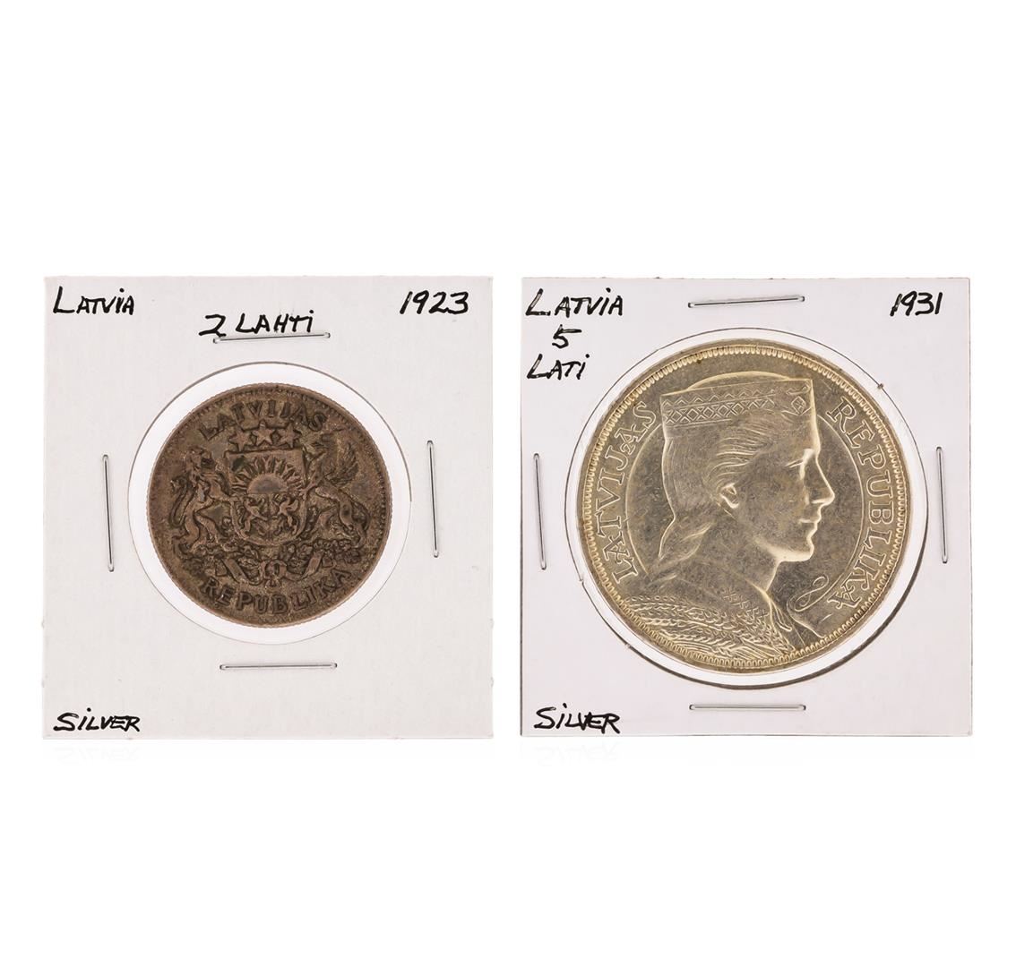 One 1923 2 Lahti Latvia & 1931 5 Latvia Silver Coins.