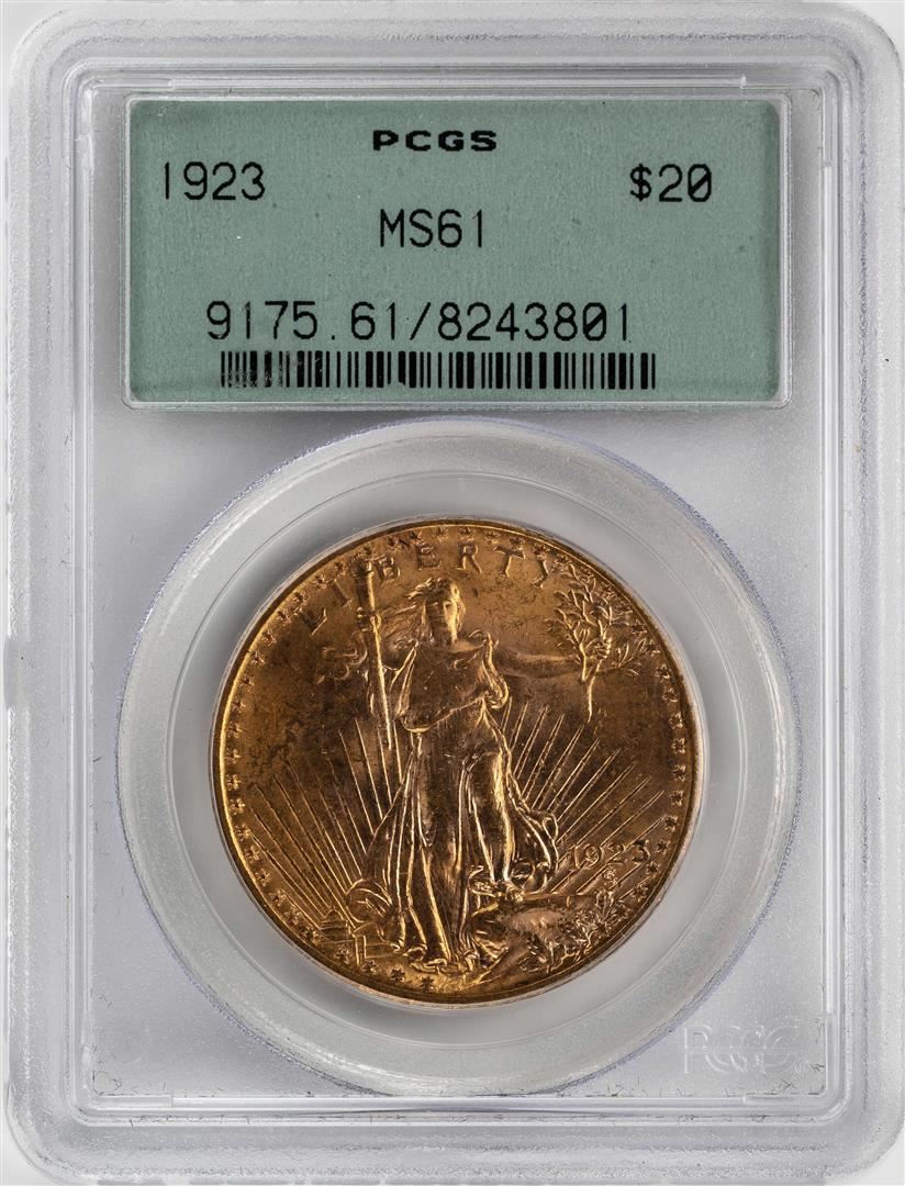 One 1923 $20 St. Gaudens Double Eagle Gold Coin PCGS MS61. PCGS Graded.