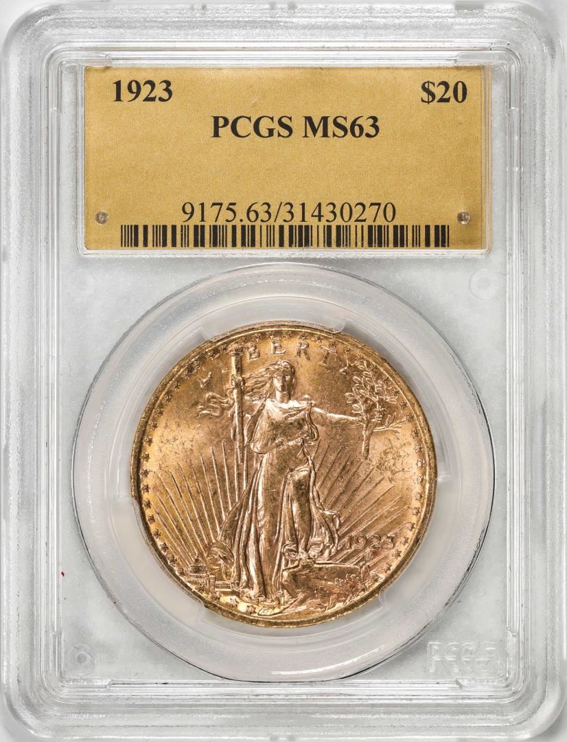 One 1923 $20 St. Gaudens Double Eagle Gold Coin PCGS MS63. PCGS Graded.