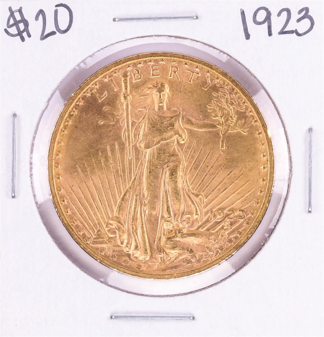 One 1923 $20 St. Gaudens Double Eagle Gold Coin.