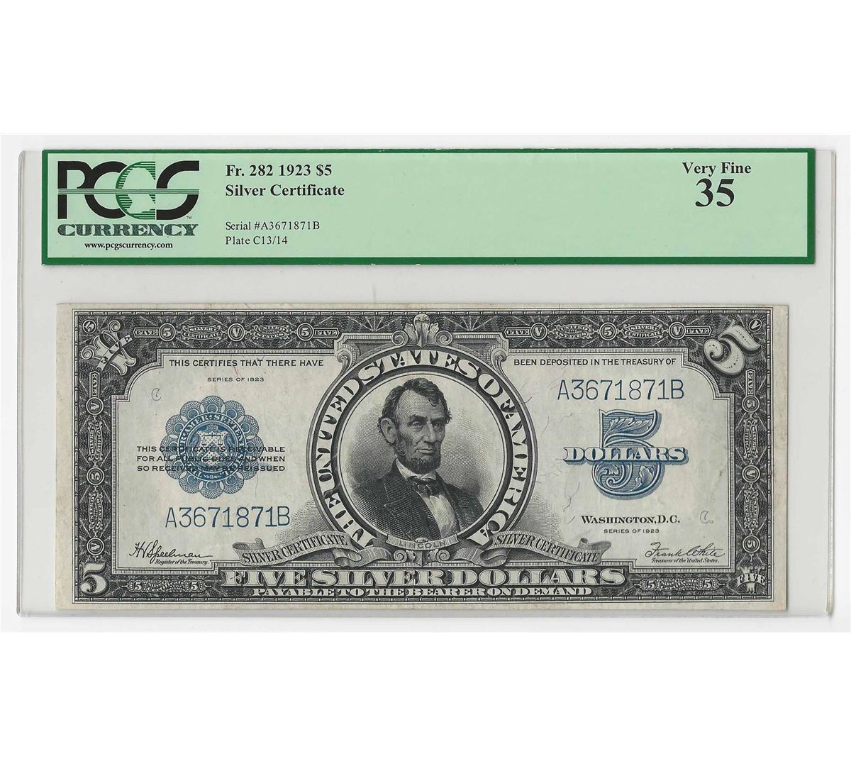 One 1923 $5 Lincoln Porthole Silver Certificate Note PCGS VF35. PCGS Graded.