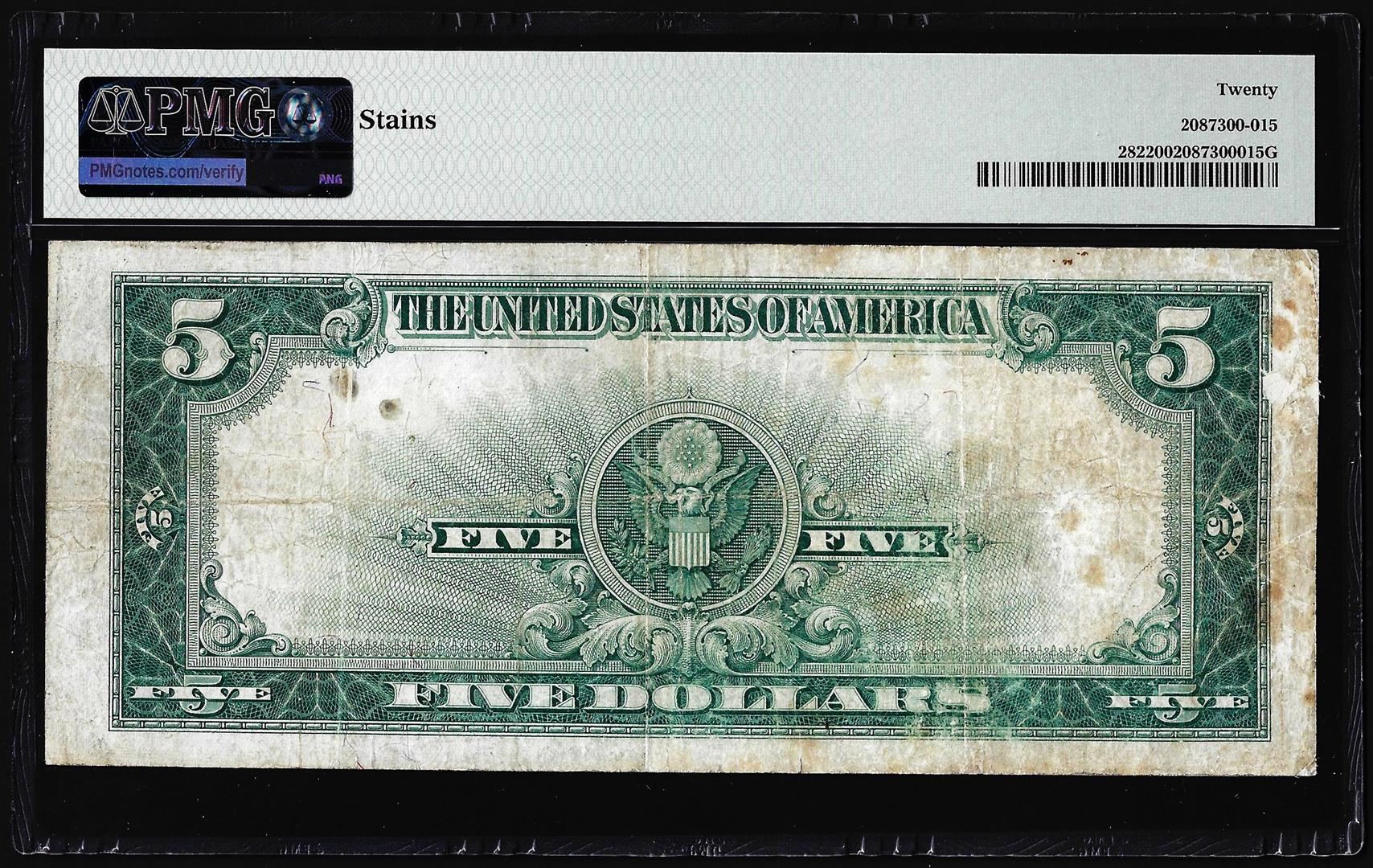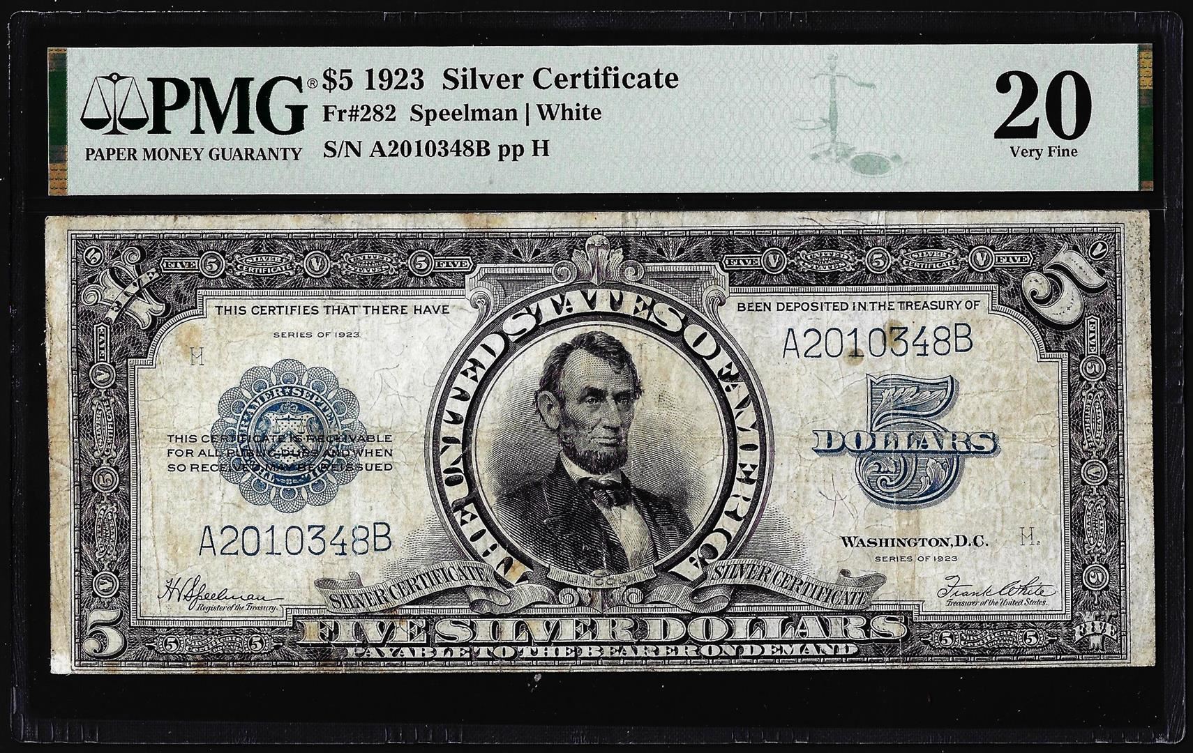 One 1923 $5 Porthole Silver Certificate Note Fr.282 PMG Very Fine 20. PMG Certified.