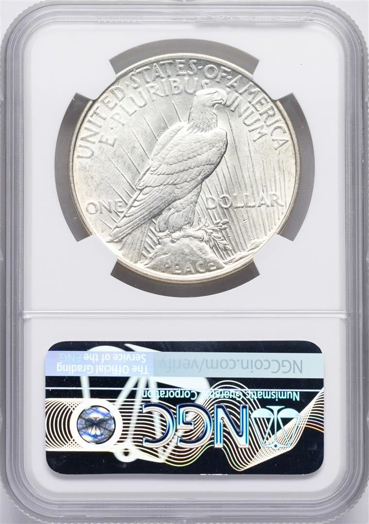 One 1923-D $1 Peace Silver Dollar Coin NGC MS61. NGC Certified.