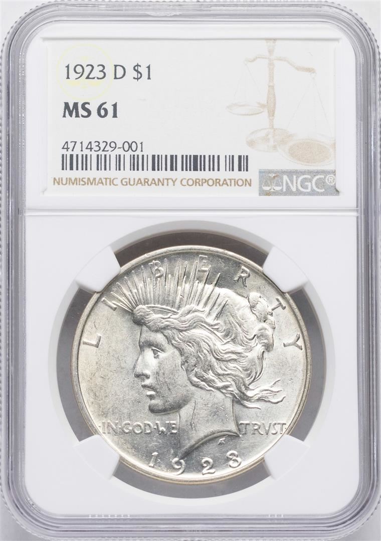 1923-D $1 Peace Silver Dollar Coin NGC MS61