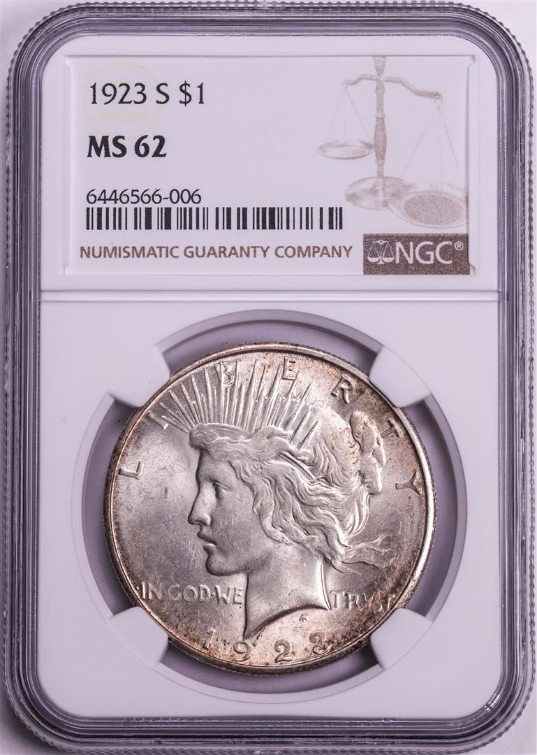1923-S $1 Peace Silver Dollar Coin NGC MS62