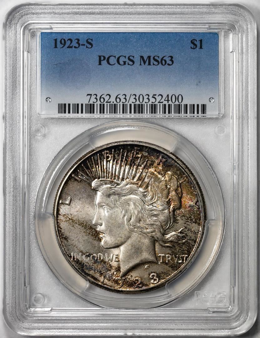 1923-S $1 Peace Silver Dollar Coin PCGS MS63 Great Toning!