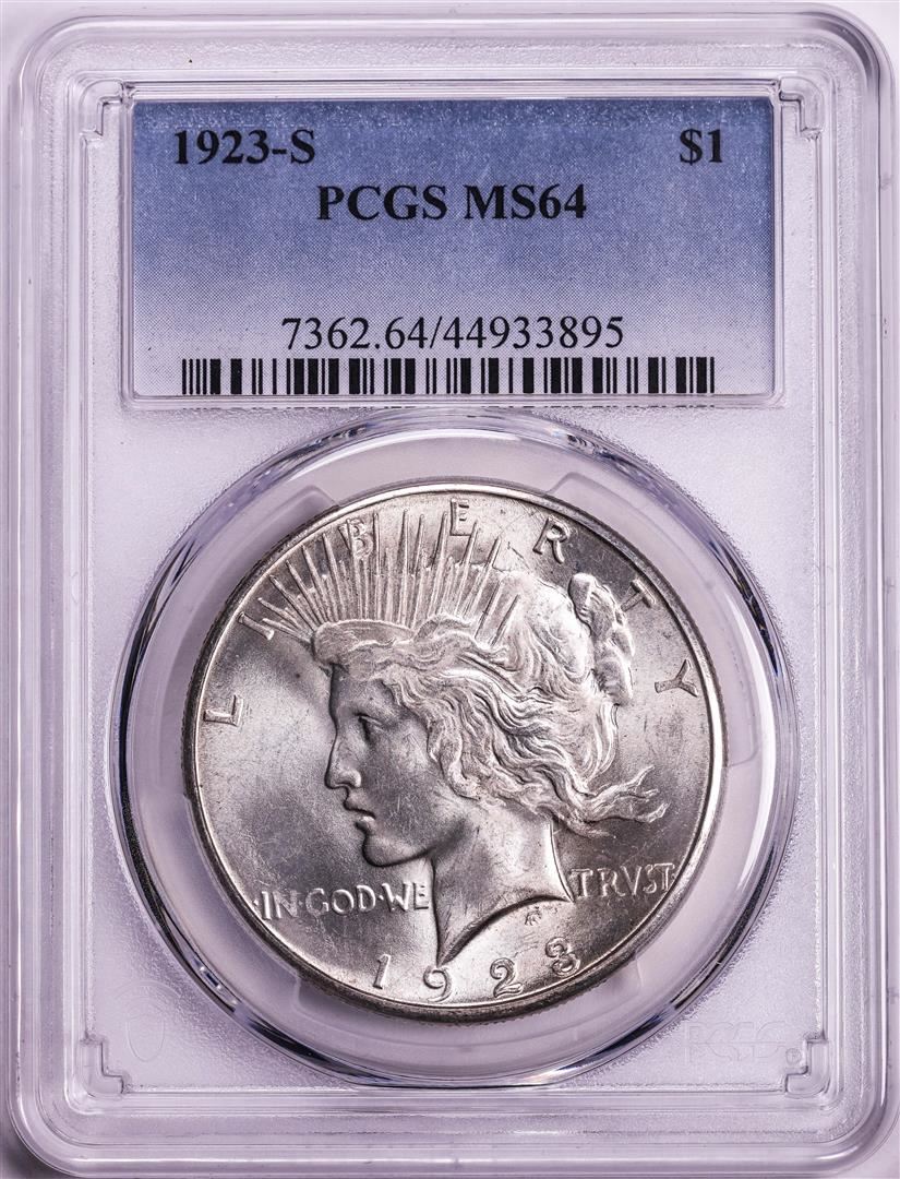One 1923-S $1 Peace Silver Dollar Coin PCGS MS64. PCGS Graded.