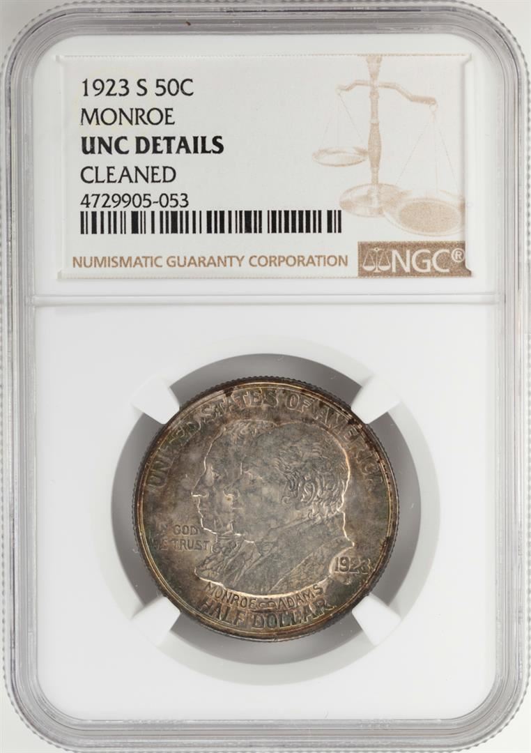 One 1923-S Monroe Doctrine Commemorative Half Dollar Coin NGC UNC Details. NGC Certified.