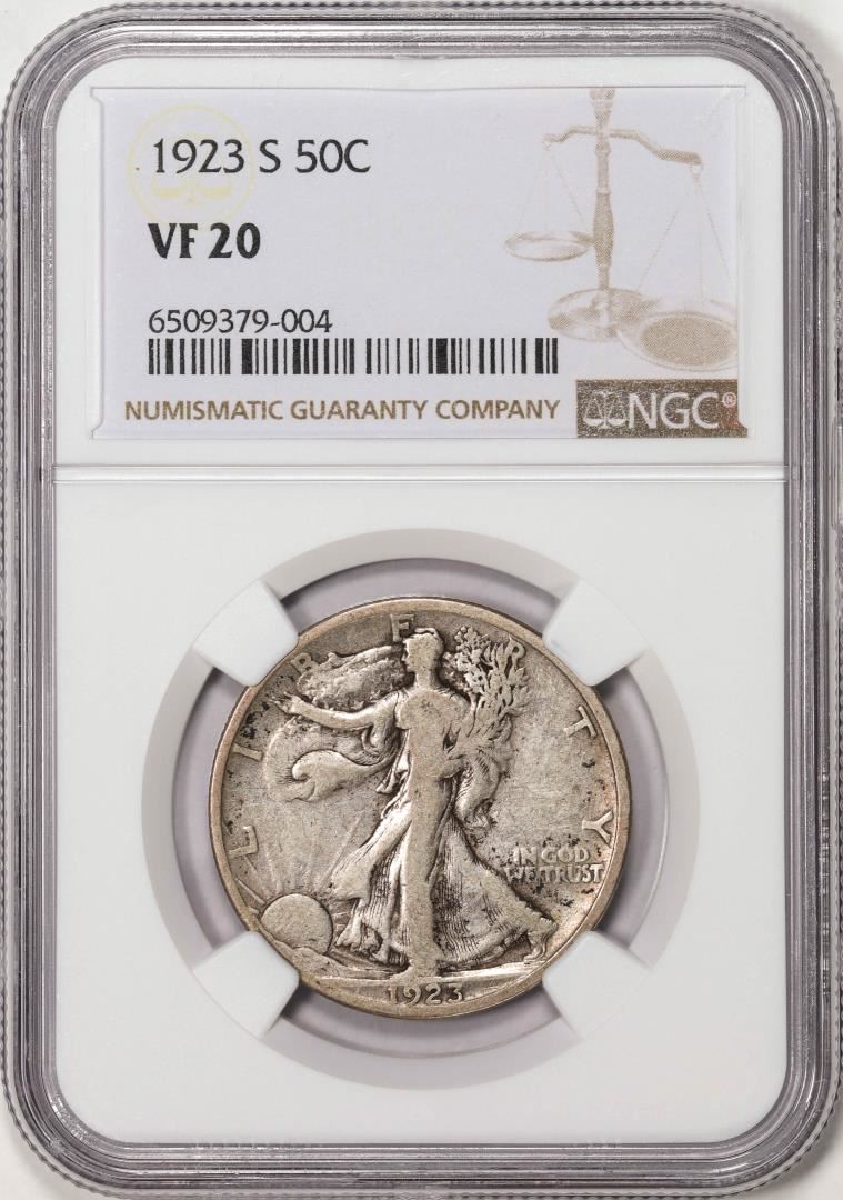 One 1923-S Walking Liberty Half Dollar Coin NGC VF20. NGC Certified.