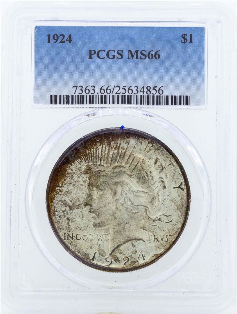 One 1924 $1 Peace Silver Dollar Coin PCGS MS66. PCGS Graded.