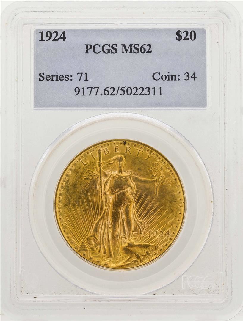 One 1924 $20 Saint Gaudens Double Eagle Gold Coin PCGS MS62. PCGS Graded.