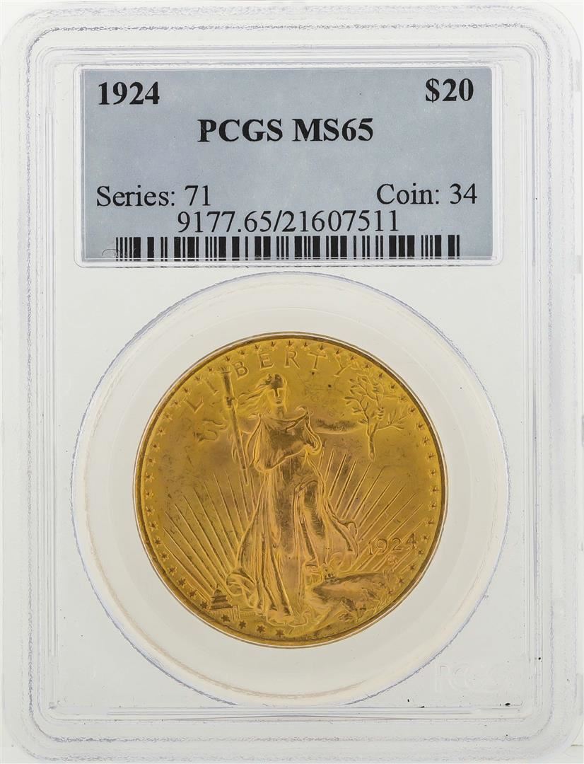 One 1924 $20 Saint Gaudens Double Eagle Gold Coin PCGS MS65. PCGS Graded.