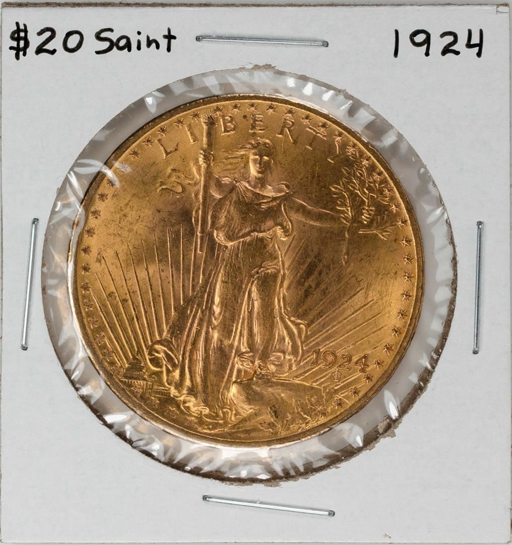 One 1924 $20 Saint Gaudens Double Eagle Gold Coin.