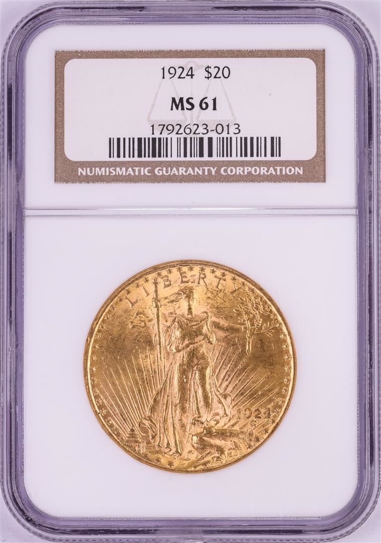 One 1924 $20 St. Gaudens Double Eagle Gold Coin NGC MS61. NGC Certified.