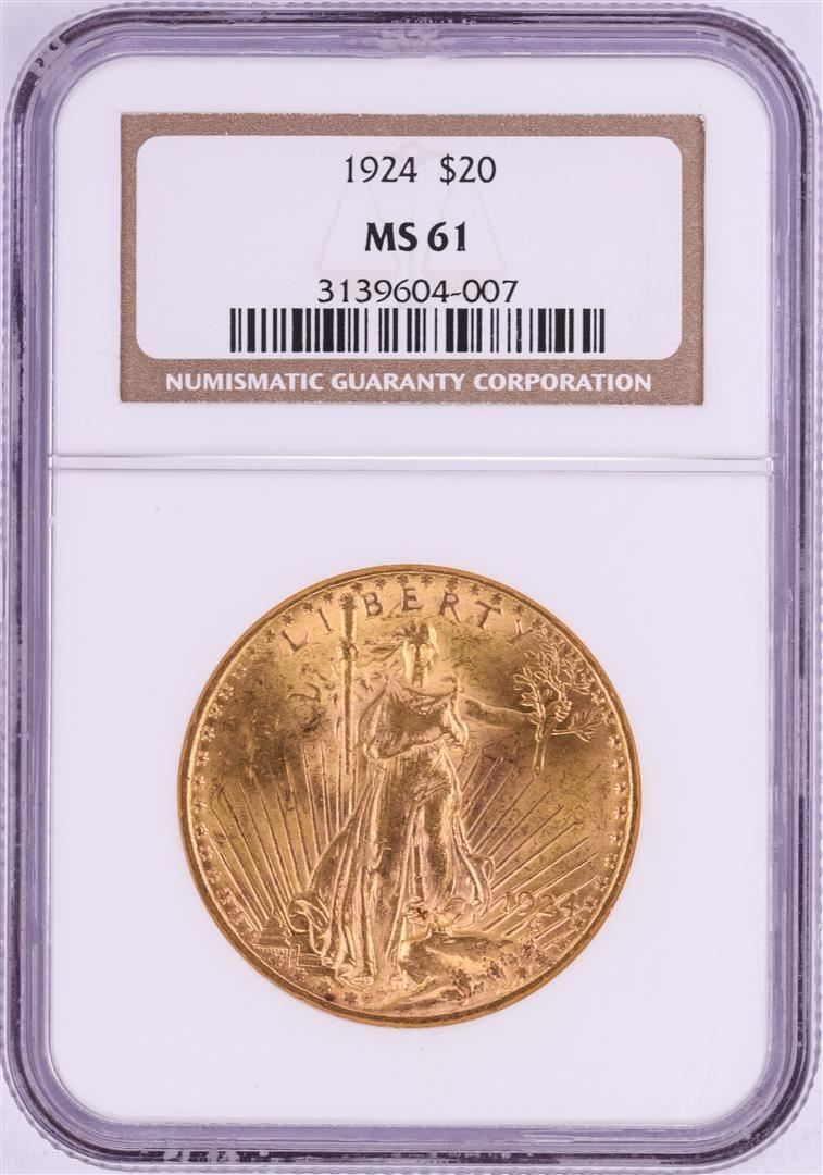 1924 $20 St. Gaudens Double Eagle Gold Coin NGC MS61