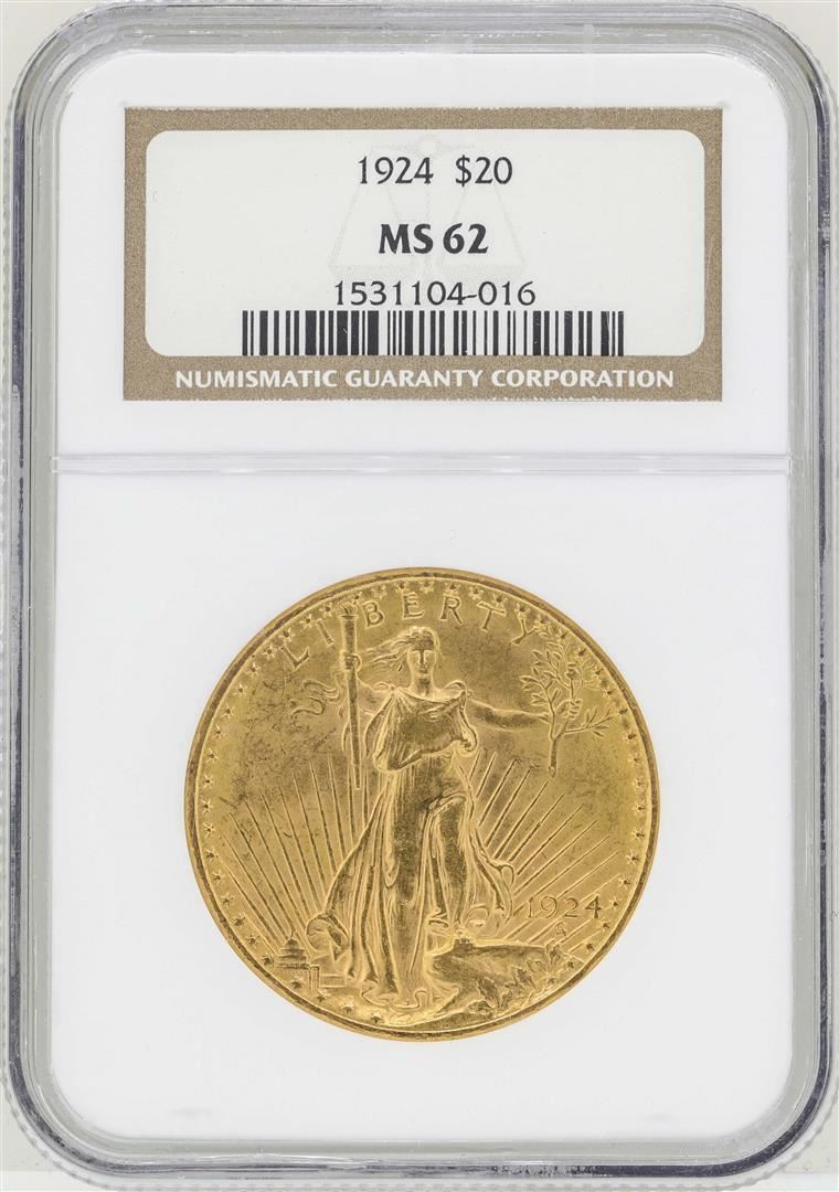 1924 $20 St. Gaudens Double Eagle Gold Coin NGC MS62