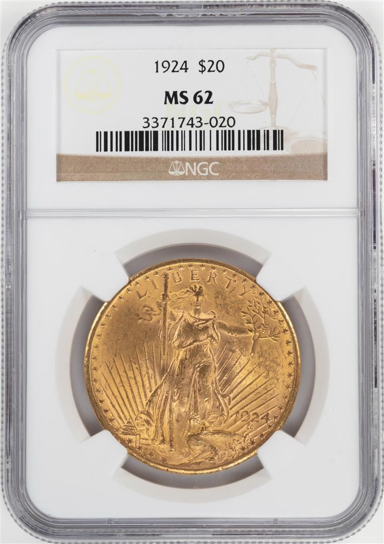 1924 $20 St. Gaudens Double Eagle Gold Coin NGC MS62