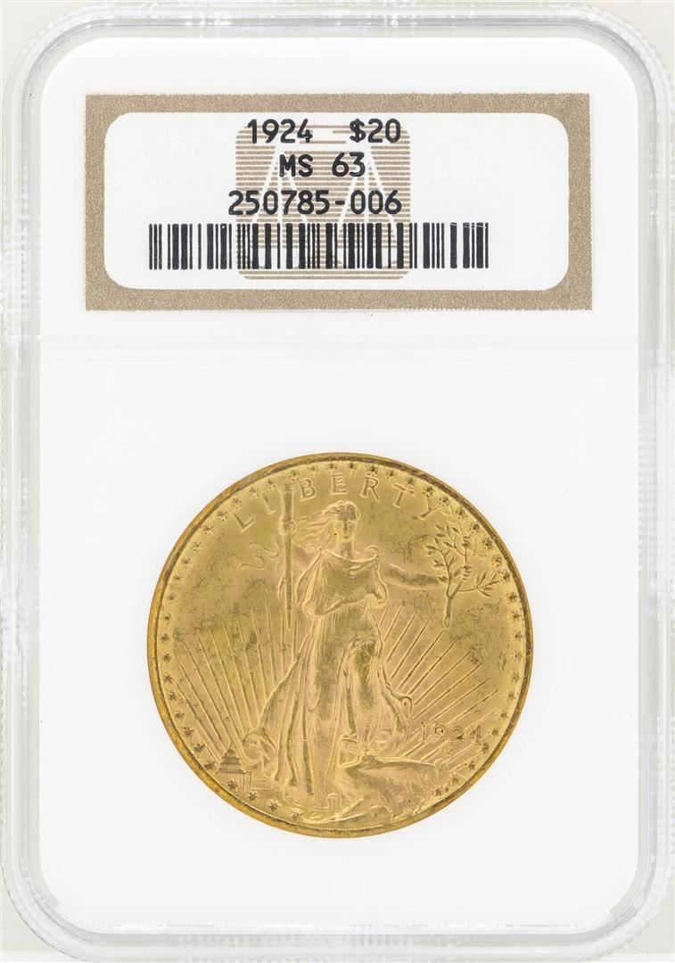 One 1924 $20 St. Gaudens Double Eagle Gold Coin NGC MS63. NGC Certified.