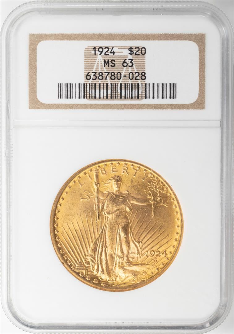 1924 $20 St. Gaudens Double Eagle Gold Coin NGC MS63