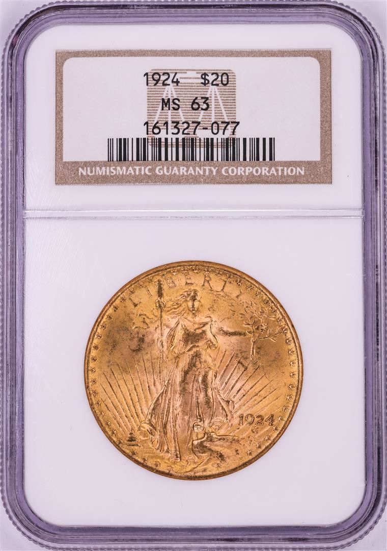 One 1924 $20 St. Gaudens Double Eagle Gold Coin NGC MS63. NGC Certified.