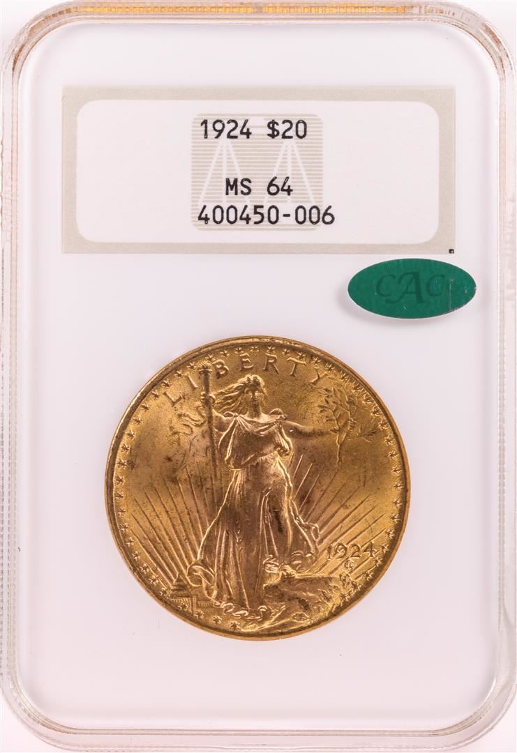 One 1924 $20 St. Gaudens Double Eagle Gold Coin NGC MS64 CAC. NGC Certified.