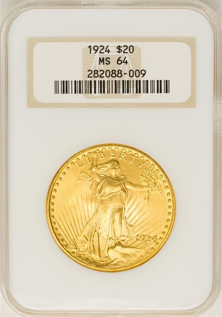 1924 $20 St. Gaudens Double Eagle Gold Coin NGC MS64