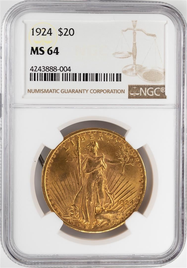 1924 $20 St. Gaudens Double Eagle Gold Coin NGC MS64