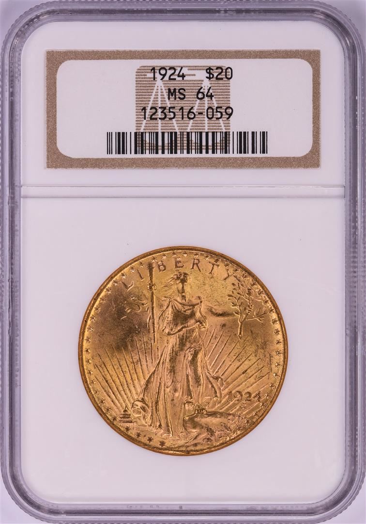 One 1924 $20 St. Gaudens Double Eagle Gold Coin NGC MS64. NGC Certified.