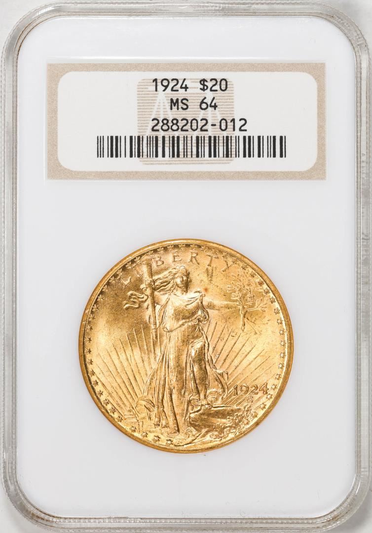 One 1924 $20 St. Gaudens Double Eagle Gold Coin NGC MS64. NGC Certified.