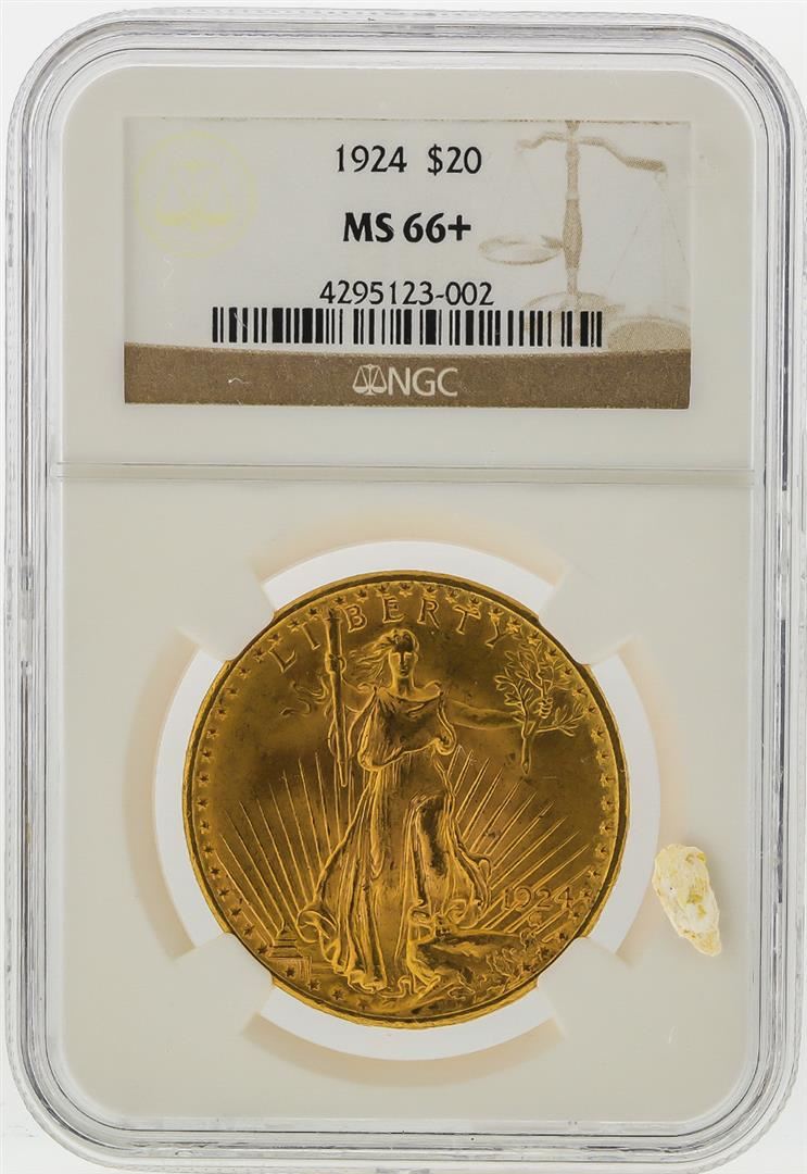 One 1924 $20 St. Gaudens Double Eagle Gold Coin NGC MS66+. NGC Certified.