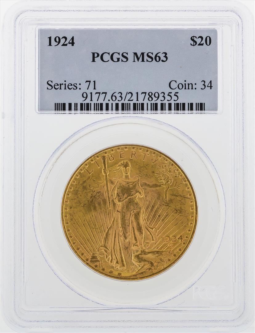 One 1924 $20 St. Gaudens Double Eagle Gold Coin PCGS MS63. PCGS Graded.