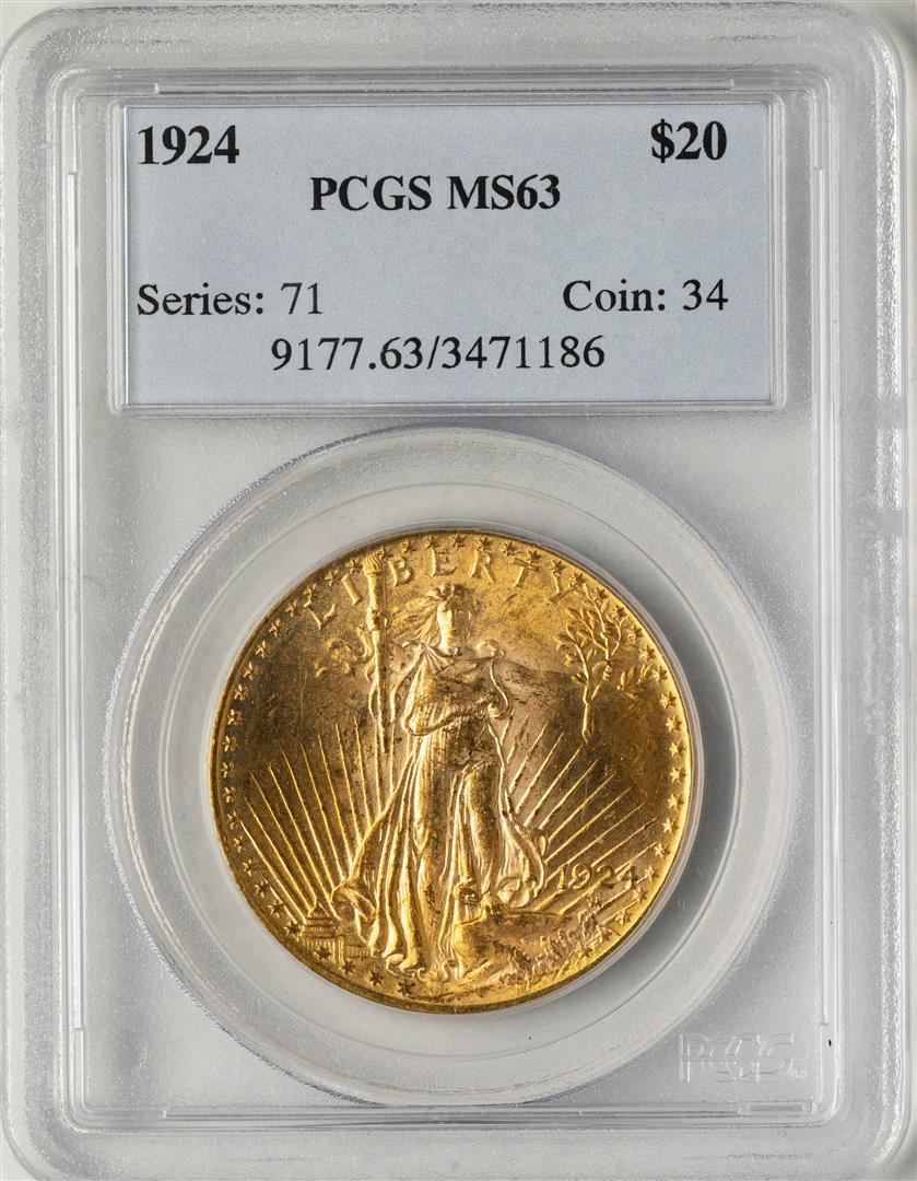 One 1924 $20 St. Gaudens Double Eagle Gold Coin PCGS MS63. PCGS Graded.