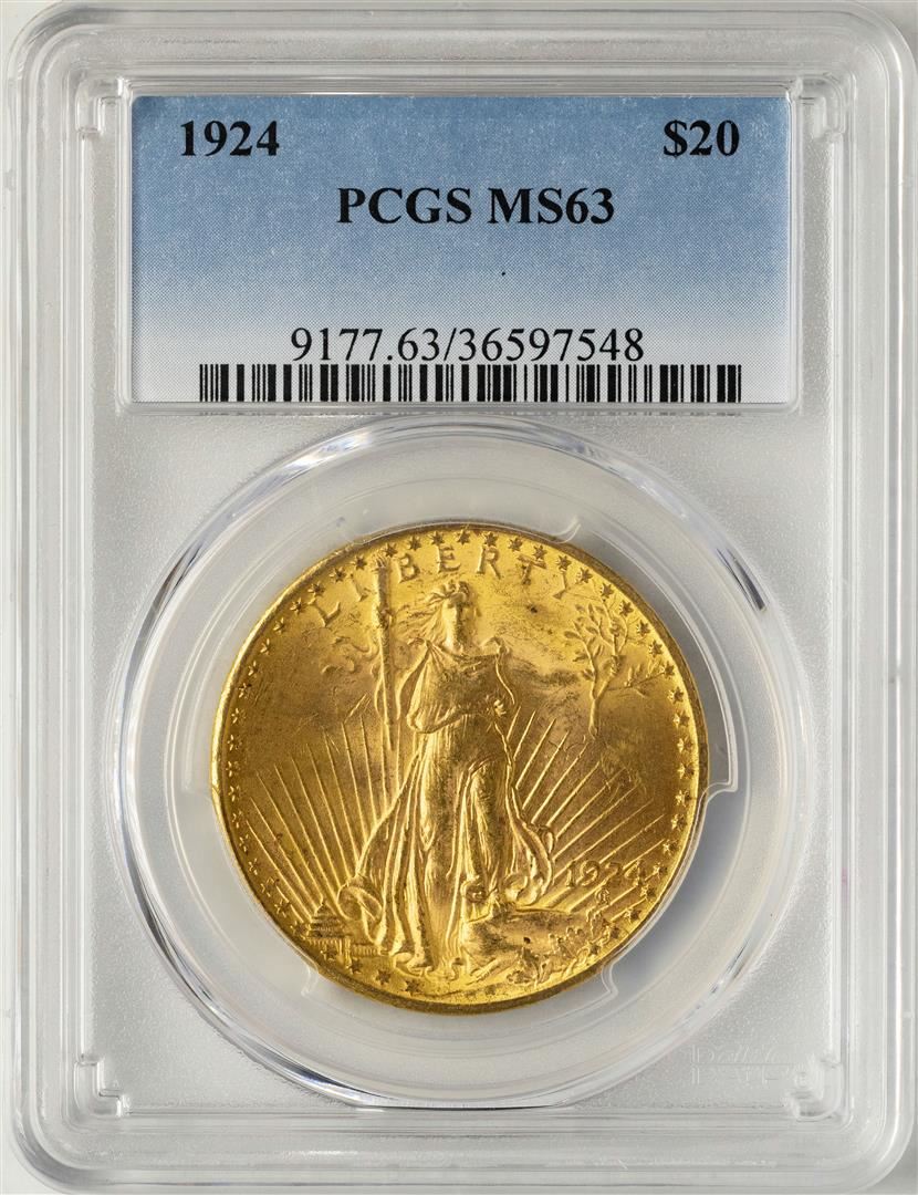 One 1924 $20 St. Gaudens Double Eagle Gold Coin PCGS MS63. PCGS Graded.
