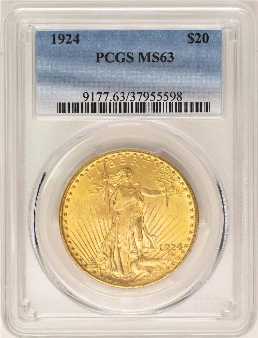 One 1924 $20 St. Gaudens Double Eagle Gold Coin PCGS MS63. PCGS Graded.
