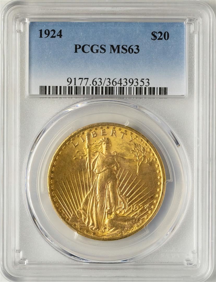 One 1924 $20 St. Gaudens Double Eagle Gold Coin PCGS MS63. PCGS Graded.