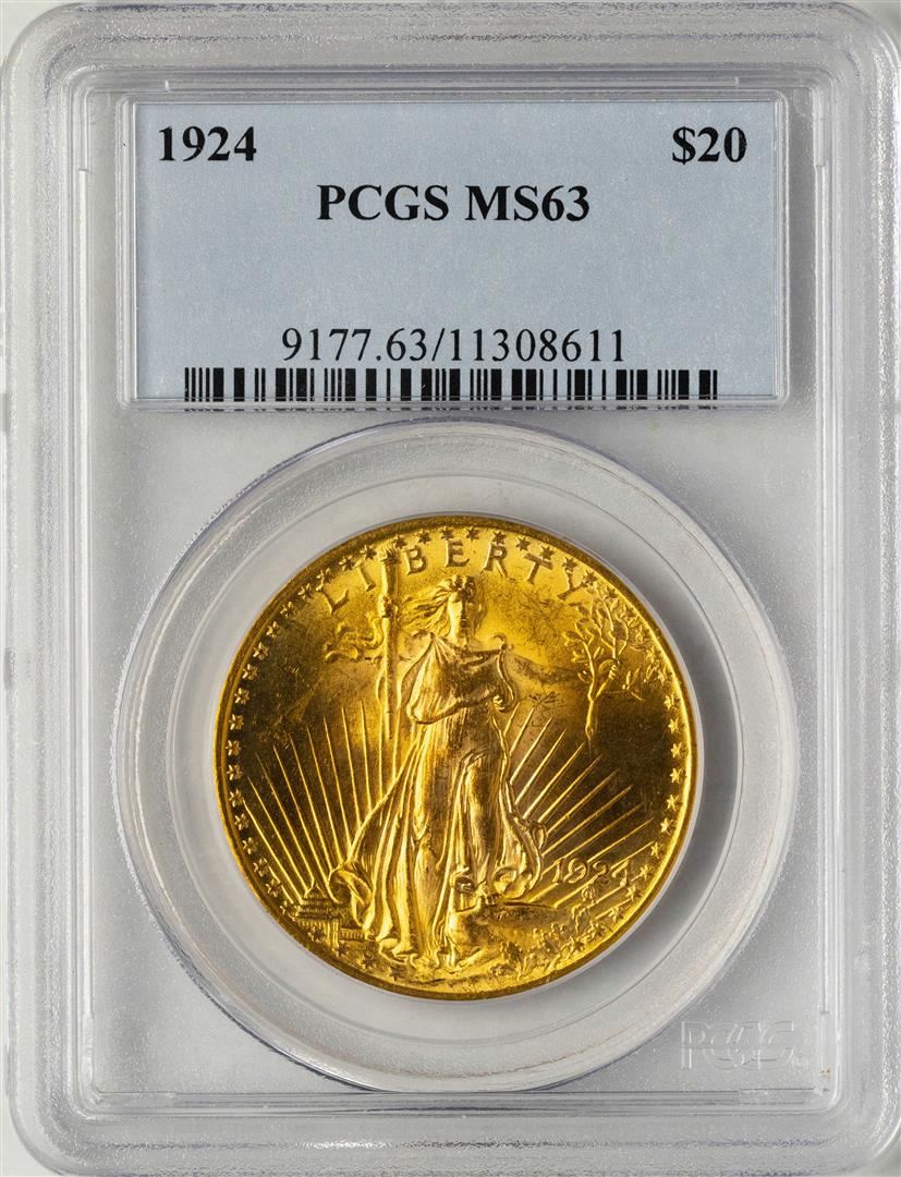 One 1924 $20 St. Gaudens Double Eagle Gold Coin PCGS MS63. PCGS Graded.
